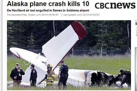 Clint Johnson, diretor do escritório da NTSB na cidade de Anchorage, afirmou que o avião havia acabado de decolar com nove passageiros e um piloto a bordo quando aconteceu a explosão.